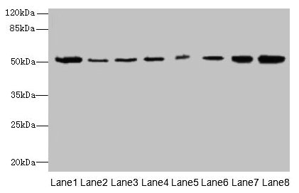 Observed band size: 52 kDa -