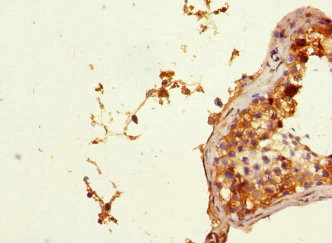 Immunohistochemistry of paraffin-embedded human testis tissue using CSB-PA017900ESR1HU at dilution of 1:100