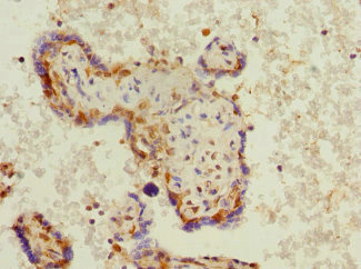 Immunohistochemistry of paraffin-embedded human placenta tissue using CSB-PA017900ESR1HU at dilution of 1:100