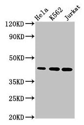 Positive WB detected in: Hela whole cell lysate, K562 whole cell lysate, Jurkat whole cell lysate