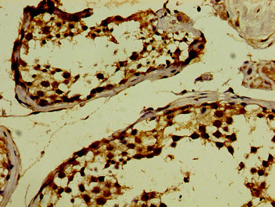 Immunohistochemistry of paraffin-embedded human testis tissue using CSB-PA017917LA01HU at dilution of 1:100