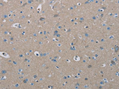 The image on the left is immunohistochemistry of paraffin-embedded Human brain tissue using CSB-PA572789(PHKA2 Antibody) at dilution 1/30, on the right is treated with synthetic peptide. (Original magnification: ×200)