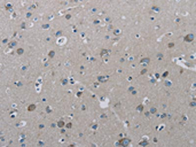 The image on the left is immunohistochemistry of paraffin-embedded Human brain tissue using CSB-PA152383(PHKA2 Antibody) at dilution 1/30, on the right is treated with synthetic peptide. (Original magnification: ×200)
