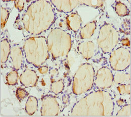 Immunohistochemistry of paraffin-embedded human thyroid tissue using CSB-PA864016DSR2HU at dilution of 1:100