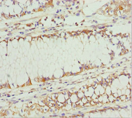 Immunohistochemistry of paraffin-embedded human colon cancer using CSB-PA864016DSR2HU at dilution of 1:100