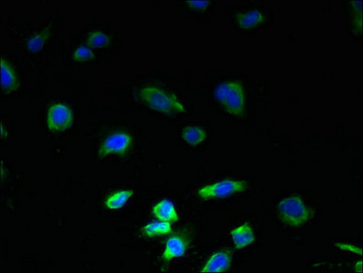 Immunofluorescent analysis of U251 cells using CSB-PA875713LA01HU at dilution of 1:100 and Alexa Fluor 488-congugated AffiniPure Goat Anti-Rabbit IgG(H+L)
