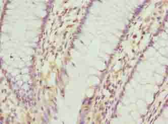 Immunohistochemistry of paraffin-embedded human colon cancer using CSB-PA875713LA01HU at dilution of 1:100