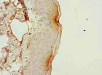 Immunohistochemistry of paraffin-embedded human skin tissue using CSB-PA875713LA01HU at dilution of 1:100
