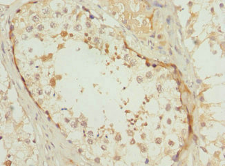Immunohistochemistry of paraffin-embedded human testis tissue using CSB-PA855046ESR2HU at dilution of 1:100