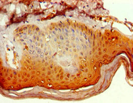 Immunohistochemistry of paraffin-embedded human skin tissue using CSB-PA897095ESR2HU at dilution of 1:100