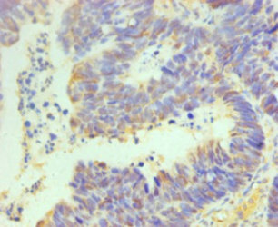 Immunohistochemistry of paraffin-embedded human ovarian cancer using CSB-PA11579A0Rb at dilution of 1:100