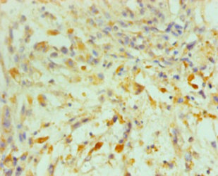 Immunohistochemistry of paraffin-embedded human melanoma using CSB-PA11579A0Rb at dilution of 1:100