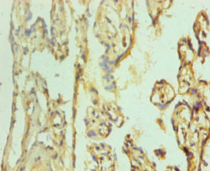 Immunohistochemistry of paraffin-embedded human placenta tissue using CSB-PA11579A0Rb at dilution of 1:100