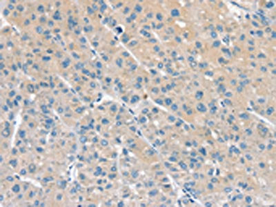 The image on the left is immunohistochemistry of paraffin-embedded Human liver cancer tissue using CSB-PA318216(PPP2CA Antibody) at dilution 1/20, on the right is treated with fusion protein. (Original magnification: ×200)