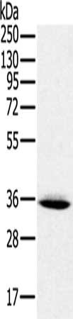 Gel: 10%SDS-PAGE, Lysate: 40 μg, Lane: Mouse brain tissue, Primary antibody: CSB-PA318216(PPP2CA Antibody) at dilution 1/300, Secondary antibody: Goat anti rabbit IgG at 1/8000 dilution, Exposure time: 1 minute