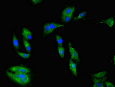 Immunofluorescent analysis of Hela cells using CSB-PA618759LA01HU at dilution of 1:100 and Alexa Fluor 488-congugated AffiniPure Goat Anti-Rabbit IgG(H+L)