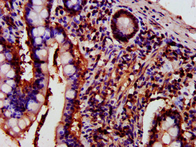 IHC image of CSB-PA15879A0Rb diluted at 1:700 and staining in paraffin-embedded human small intestine tissue performed on a Leica BondTM system. After dewaxing and hydration, antigen retrieval was mediated by high pressure in a citrate buffer (pH 6.0). Section was blocked with 10% normal goat serum 30min at RT. Then primary antibody (1% BSA) was incubated at 4°C overnight. The primary is detected by a biotinylated secondary antibody and visualized using an HRP conjugated SP system.