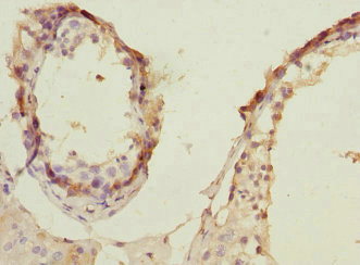 Immunohistochemistry of paraffin-embedded human testis tissue using CSB-PA018776ESR1HU at dilution of 1:100