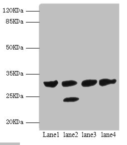 Observed band size: 29, 25 kDa -