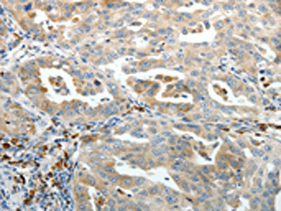The image on the left is immunohistochemistry of paraffin-embedded Human colon cancer tissue using CSB-PA087229(PTEN Antibody) at dilution 1/20, on the right is treated with synthetic peptide. (Original magnification: ×200)