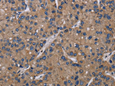 The image on the left is immunohistochemistry of paraffin-embedded Human liver cancer tissue using CSB-PA232987(PVRL4 Antibody) at dilution 1/40, on the right is treated with fusion protein. (Original magnification: ×200)