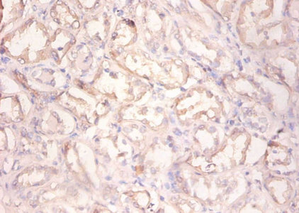 Immunohistochemistry of paraffin-embedded human kidney tissue using CSB-PA019122EA01HU at dilution of 1:100