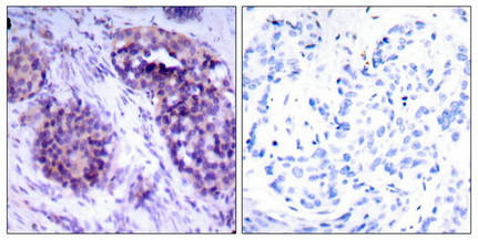 Immunohistochemical analysis of paraffin-embedded human breast carcinoma tissue using BCL-XL (phospho-Ser62) antibody.