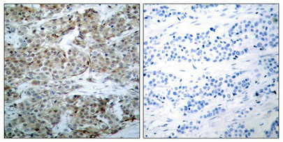 純化方式:Antibodies were produced by immunizing rabbits with synthetic phosphopeptide and KLH conjugates. Antibodies were purified by affinity-chromatography using epitope-specific phosphopeptide. Non-phospho specific antibodies were removed by chromatogramphy usi
