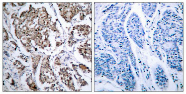 純化方式:Antibodies were produced by immunizing rabbits with synthetic phosphopeptide and KLH conjugates. Antibodies were purified by affinity-chromatography using epitope-specific phosphopeptide. Non-phospho specific antibodies were removed by chromatogramphy usi