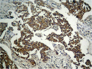 Immunohistochemical analysis of paraffin-embedded human Lung carcinoma tissue using GSK3β (Phospho-Ser9) Antibody.