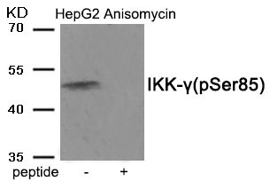 免疫原:Peptide sequence around phosphorylation site of serine 85 (Q-A-S(p)-Q-R) derived from Human IKK-gamma.