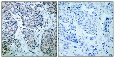 純化方式:Antibodies were produced by immunizing rabbits with synthetic phosphopeptide and KLH conjugates. Antibodies were purified by affinity-chromatography using epitope-specific phosphopeptide. Non-phospho specific antibodies were removed by chromatogramphy usi