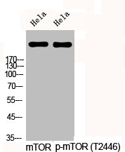 免疫原:Synthesized peptide derived from Human mTOR around the phosphorylation site of T2446.