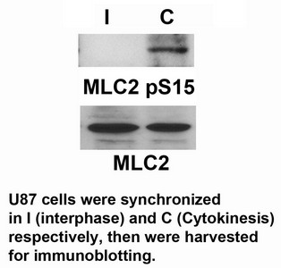 免疫原:Peptide sequence around phosphorylation site of serine 15 (A-N-S(p)-N-V) derived from Human MLC2.