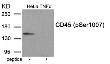 免疫原:Peptide sequence around phosphorylation site of serine 1007 (D-D-S(p)-D-S) derived from Human CD45.