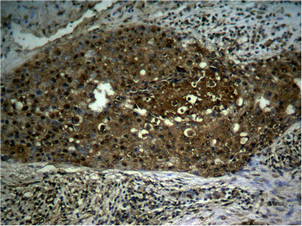 Immunohistochemical analysis of paraffin- embedded human breast carcinoma tissue using NFκB-p65 (Phospho-Ser276) antibody.