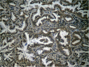Immunohistochemical analysis of paraffin- embedded human lung carcinoma tissue using NFκB-p65 (Phospho-Ser276) antibody.