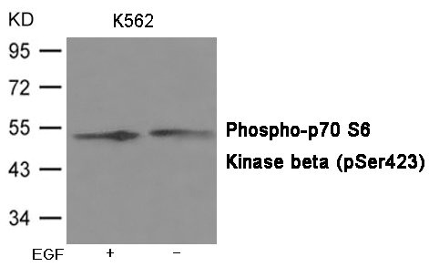 免疫原:Peptide sequence around phosphorylation site of Serine 423(P-V-S(p)-P-L) derived from Human p70 S6 Kinase beta.