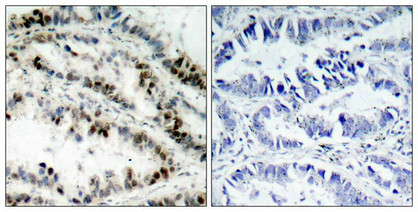 純化方式:Antibodies were produced by immunizing rabbits with synthetic phosphopeptide and KLH conjugates. Antibodies were purified by affinity-chromatography using epitope-specific phosphopeptide. Non-phospho specific antibodies were removed by chromatogramphy usi