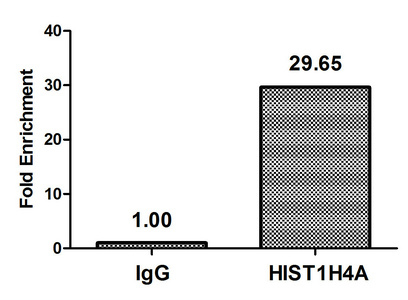Chromatin Immunoprecipitation Hela (4*106, treated with 10mM sodium propionate for 4h) were treated with Micrococcal Nuclease, sonicated, and immunoprecipitated with 5µg anti-HIST1H4A (CSB-PA010429OA16propHU) or a control normal rabbit IgG. The resulting ChIP DNA was quantified using real-time PCR with primers against the β-Globin promoter.