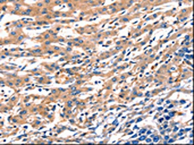The image on the left is immunohistochemistry of paraffin-embedded Human liver cancer tissue using CSB-PA981899(RAB18 Antibody) at dilution 1/300, on the right is treated with synthetic peptide. (Original magnification: ×200)
