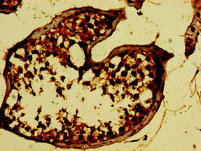 Immunohistochemistry of paraffin-embedded human testis tissue using CSB-PA855052LA01HU at dilution of 1:100