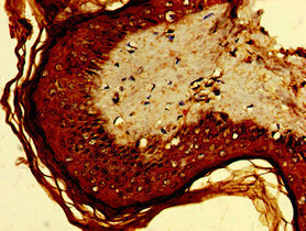 Immunohistochemistry of paraffin-embedded human skin tissue using CSB-PA855052LA01HU at dilution of 1:100