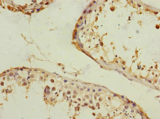 Immunohistochemistry of paraffin-embedded human testis tissue using CSB-PA867162DSR2HU at dilution of 1:100