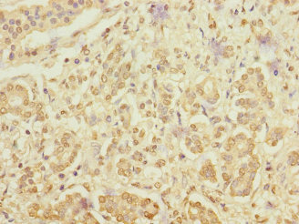 Immunohistochemistry of paraffin-embedded human pancreatic cancer using CSB-PA867162DSR2HU at dilution of 1:100