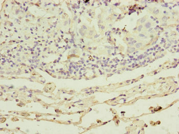 Immunohistochemistry of paraffin-embedded human lung cancer using CSB-PA732918ESR2HU at dilution of 1:100