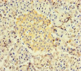 Immunohistochemistry of paraffin-embedded human pancreatic tissue using CSB-PA019486LA01HU at dilution of 1:100