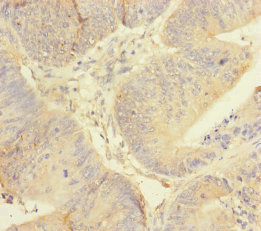 Immunohistochemistry of paraffin-embedded human colon cancer using CSB-PA723351ESR1HU at dilution of 1:100