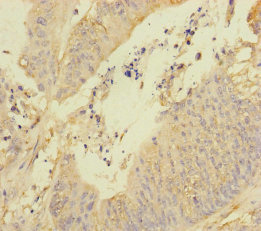 Immunohistochemistry of paraffin-embedded human colon cancer using CSB-PA723351ESR2HU at dilution of 1:100