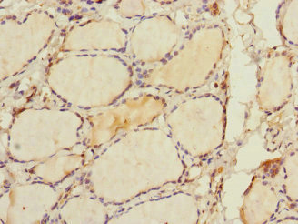 Immunohistochemistry of paraffin-embedded human thyroid tissue using CSB-PA019684ESR2HU at dilution of 1:100